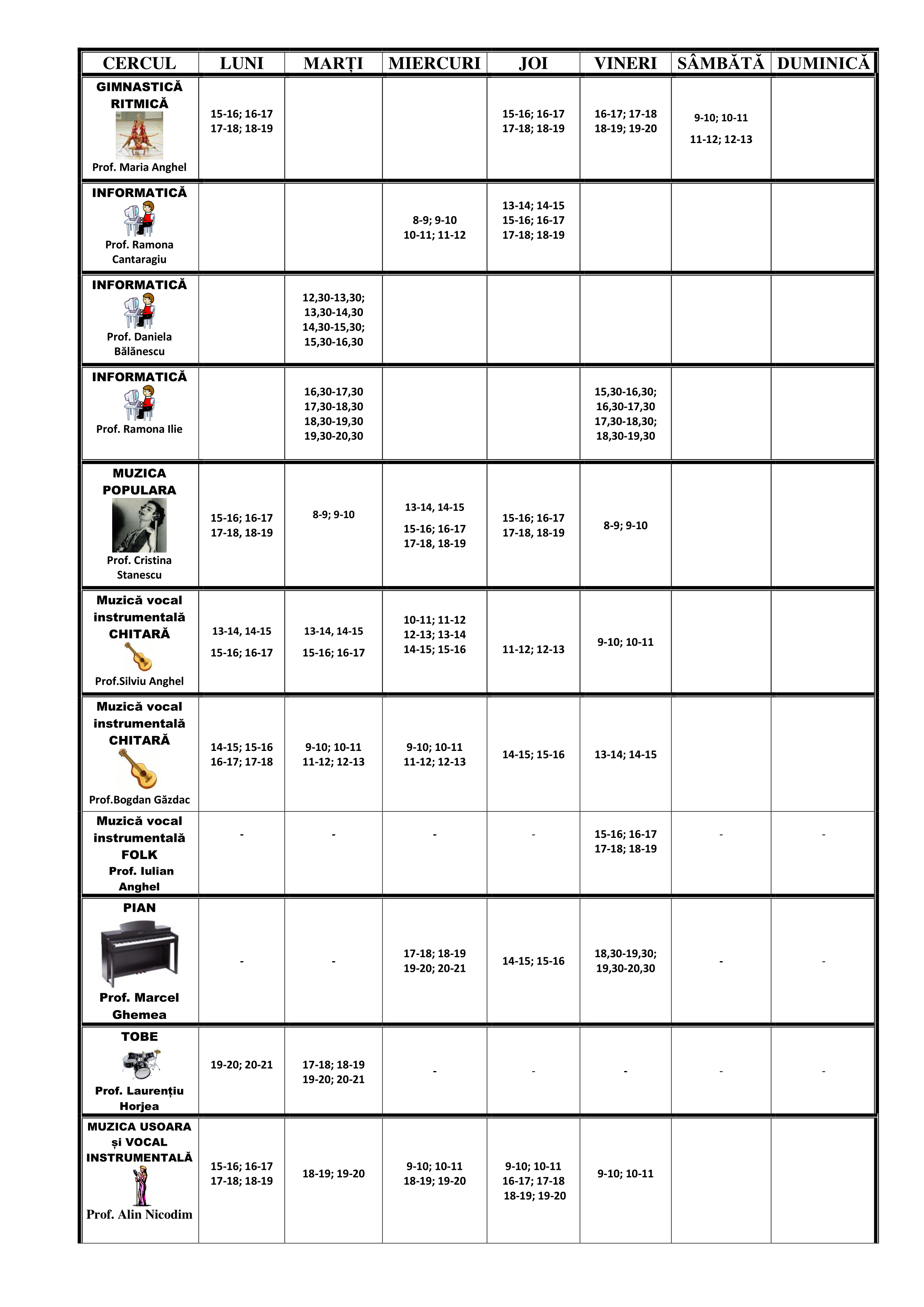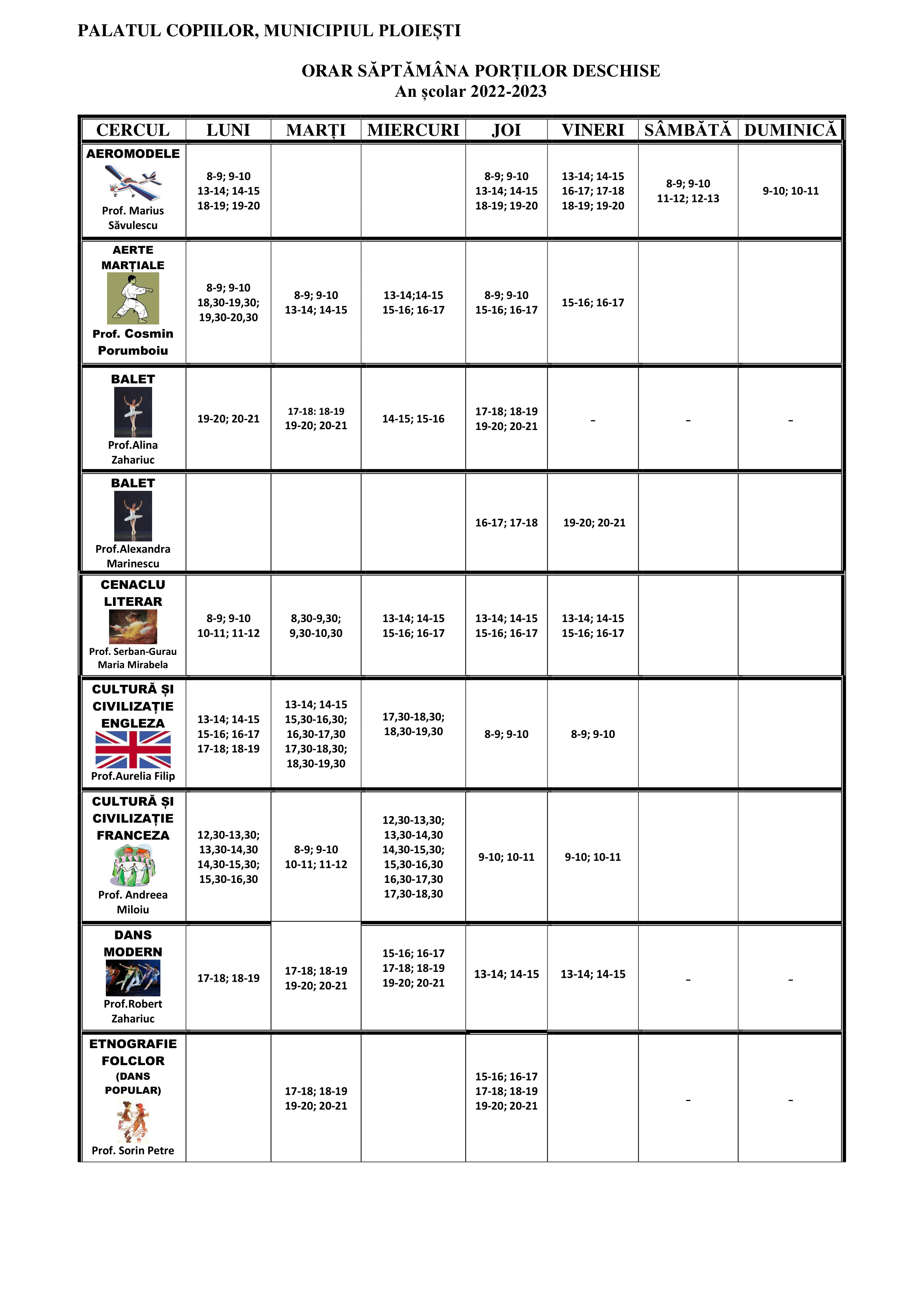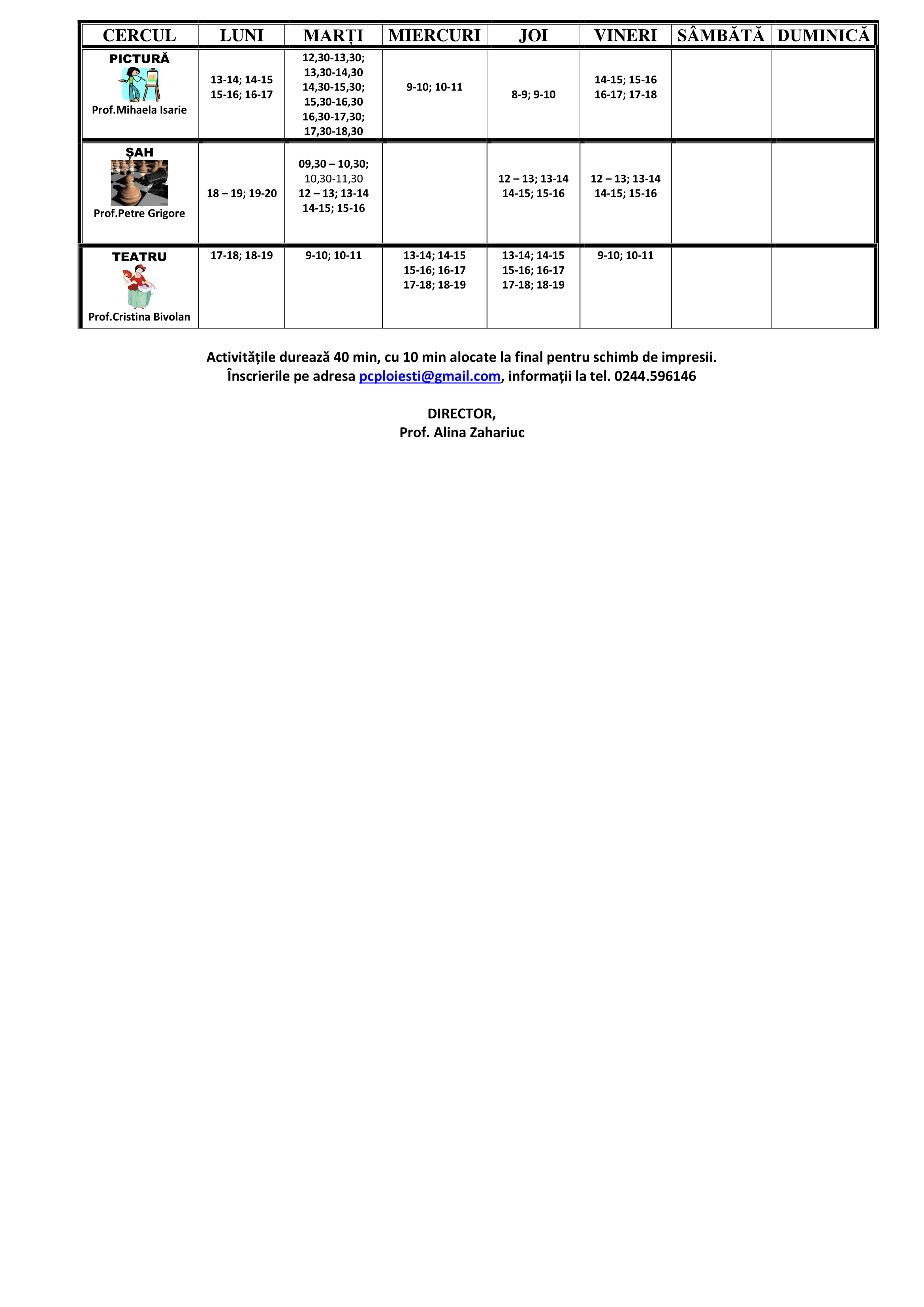 Orar 2025-2026 Clubul Copiilor Băicoi